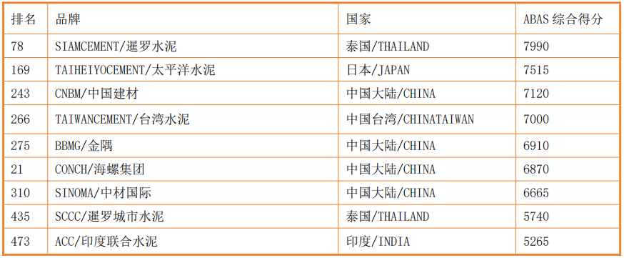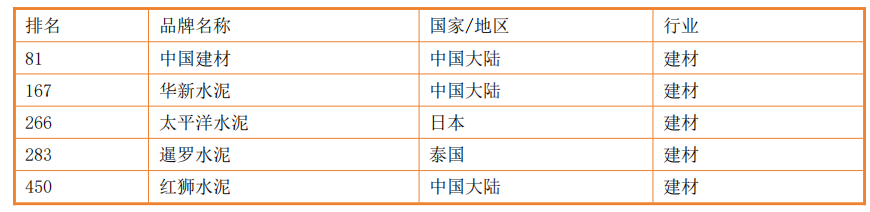 2021年亞洲500強(qiáng)榜單水泥建材行業(yè)