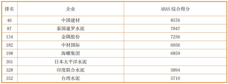 2022年亞洲500強(qiáng)榜單水泥建材行業(yè)