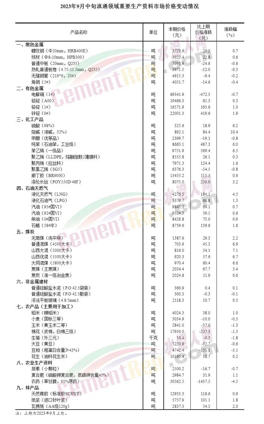原油價(jià)格飄忽不定,與OPEC產(chǎn)油國的動(dòng)態(tài)密切相關(guān),但與實(shí)際需求關(guān)聯(lián)不大,可以說是走出了一波“獨(dú)立的行情”。這種行情帶來的結(jié)果,除了國內(nèi)成品油方面漲勢(shì)兇猛外,自然也帶動(dòng)了原油產(chǎn)業(yè)鏈和衍生產(chǎn)業(yè)鏈上多種化工產(chǎn)品的價(jià)格上漲。據(jù)國家統(tǒng)計(jì)局?jǐn)?shù)據(jù),2023年9月上旬與8月下旬相比,全國流通領(lǐng)域9大類50種重要生產(chǎn)資料市場(chǎng)價(jià)格中,43種產(chǎn)品價(jià)格上漲。其中化工品行業(yè),多個(gè)品種價(jià)格上行。