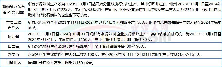 近期,新疆、寧夏等多地公布了2023-2024年錯峰生產(chǎn)計劃。水泥人網(wǎng)注意到,各區(qū)域的停產(chǎn)時間明顯延長,停產(chǎn)要求明顯加嚴(yán)。
