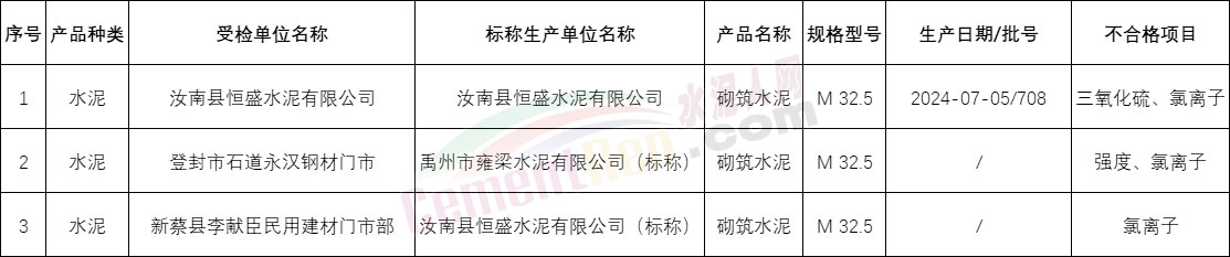 河南省市場監(jiān)管局水泥產(chǎn)品監(jiān)督檢查,3批次不合格品中有兩批次來自流通領(lǐng)域。生產(chǎn)領(lǐng)域的一家水泥企業(yè)連續(xù)兩年抽檢不合格。