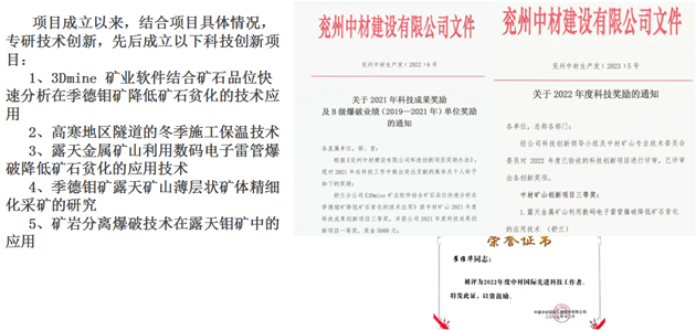 在降本增效方面,分公司積極組織各科室負(fù)責(zé)人、各專業(yè)技術(shù)負(fù)責(zé)人進(jìn)行學(xué)習(xí)、討論各項(xiàng)生產(chǎn)流程、施工工序、組織結(jié)構(gòu)等關(guān)鍵環(huán)節(jié),嚴(yán)格控制和降低各項(xiàng)施工成本。同時(shí),分公司還堅(jiān)持創(chuàng)新驅(qū)動(dòng)理念,結(jié)合礦山實(shí)際,積極探索各項(xiàng)新技術(shù)應(yīng)用,其中“3dmine在季德鉬礦降低貧化率的應(yīng)用”的成效顯著,不僅提升了工作效率,還有效降低了成本,該項(xiàng)技術(shù)創(chuàng)新也成功獲得“2021年度中材礦山科技創(chuàng)新一等獎(jiǎng)”。