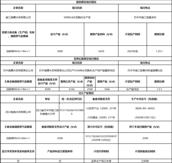 南江海螺水泥有限公司水泥熟料項目產(chǎn)能置換變更方案